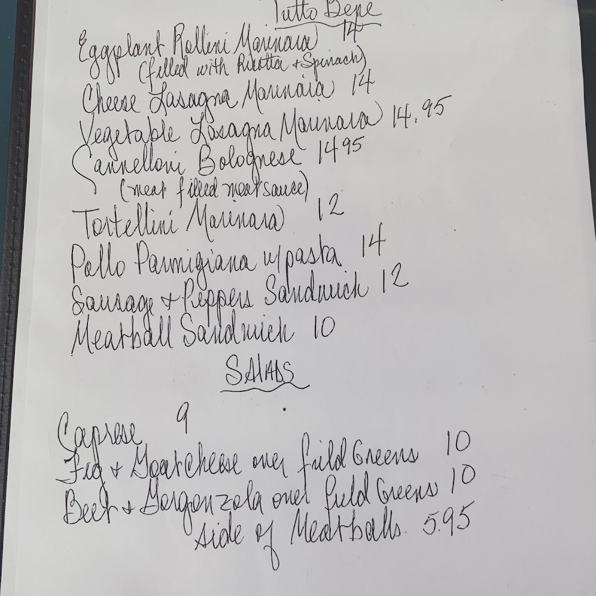 Tutto Bene Ristorante Italiano Menu